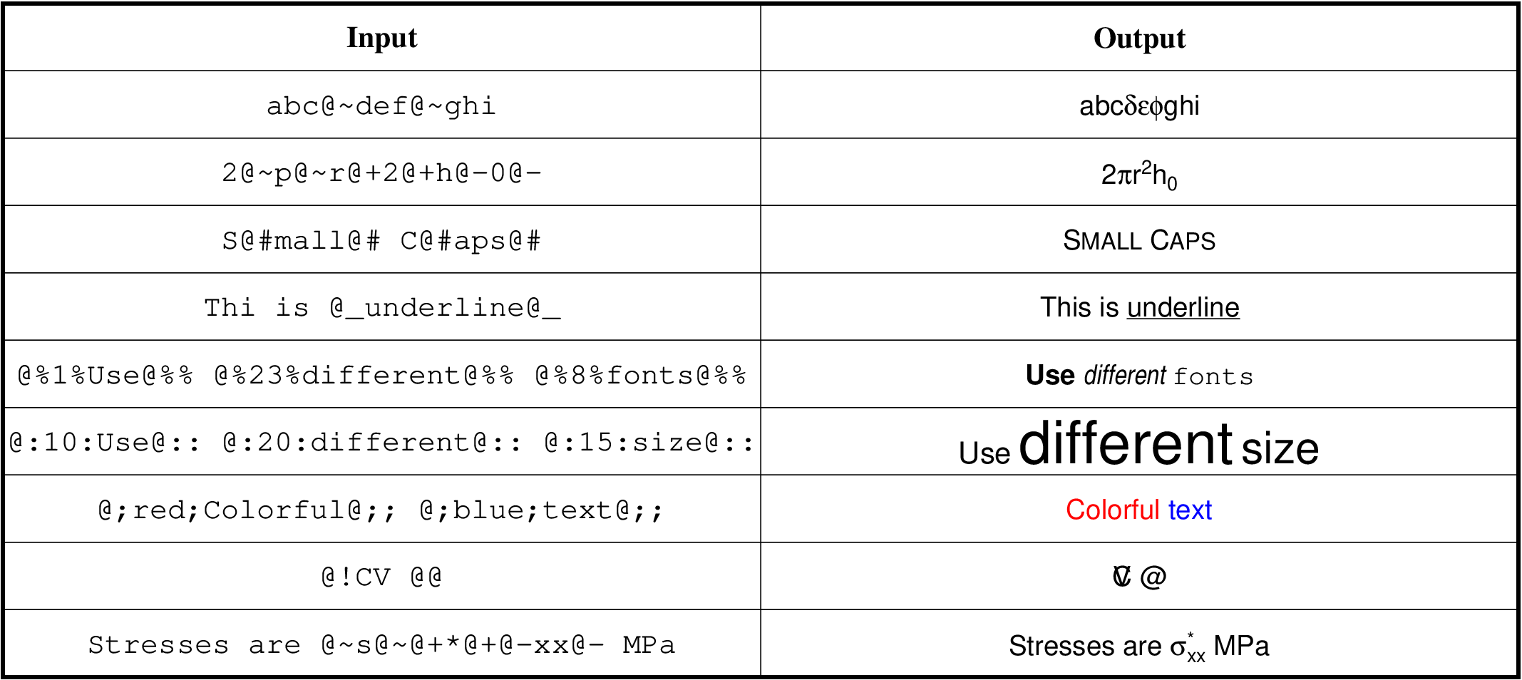 前面介绍了如何设置文字的文字大小、字体和颜色以及如何输入特殊字符。 在此基础上,GMT提供了转义字符,以实现上标、下标等功能,并可以在一个字符串内 随意切换字体、字号和颜色,给文本加入了更丰富的效果。