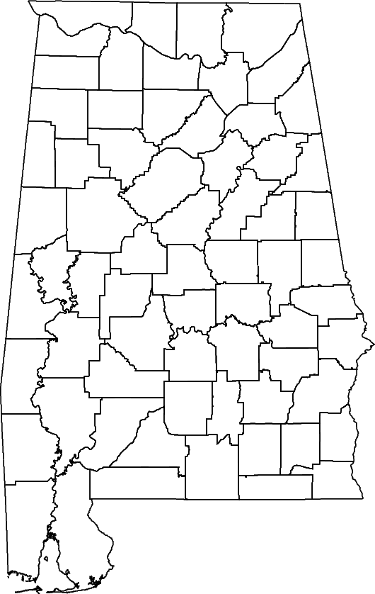 中提取该州的州界和县界 Alabama.gmt,绘图效果如下: