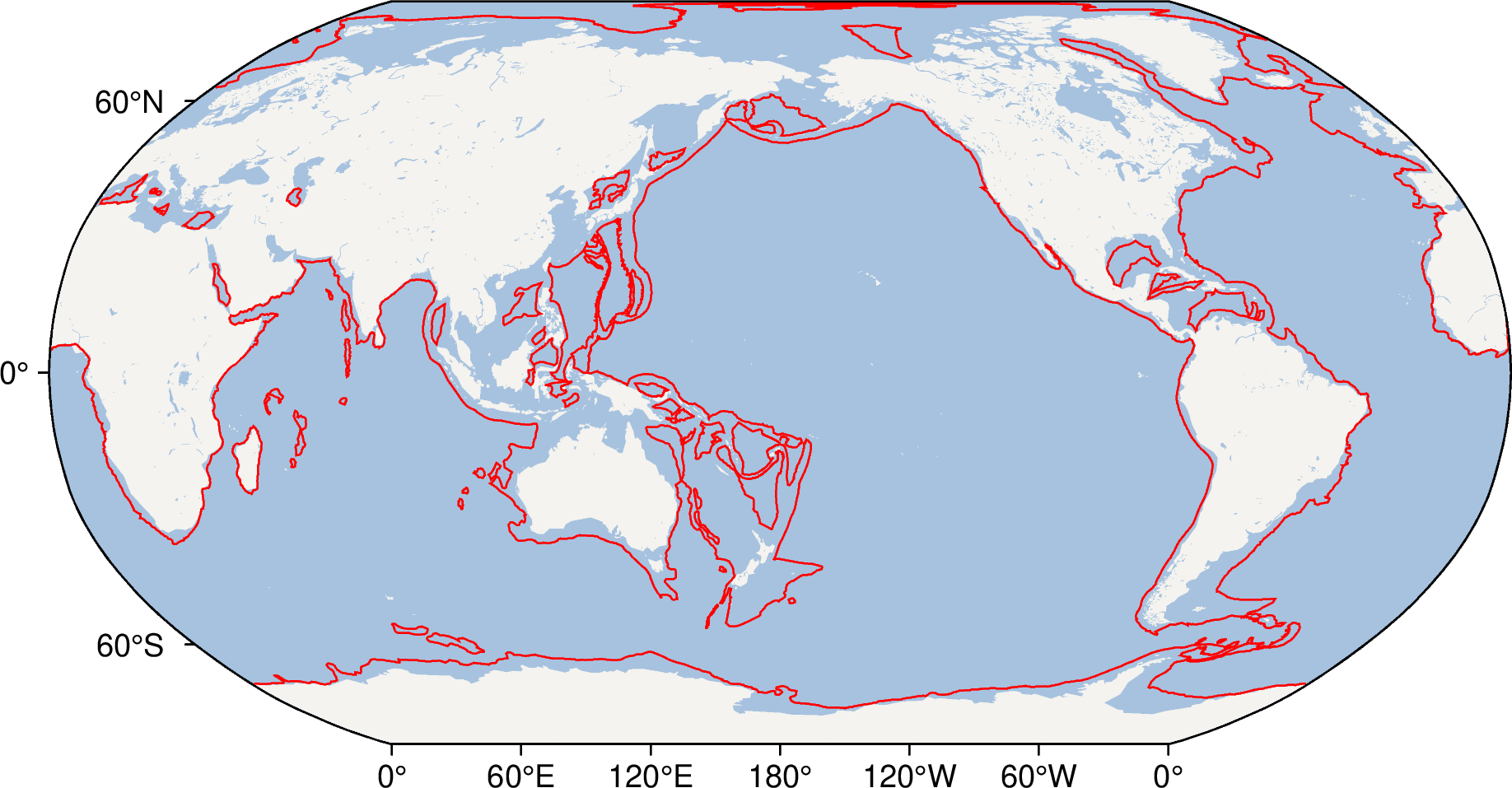 数据文件 oc_boundaries.gmt 包含了全球的海陆边界线。
