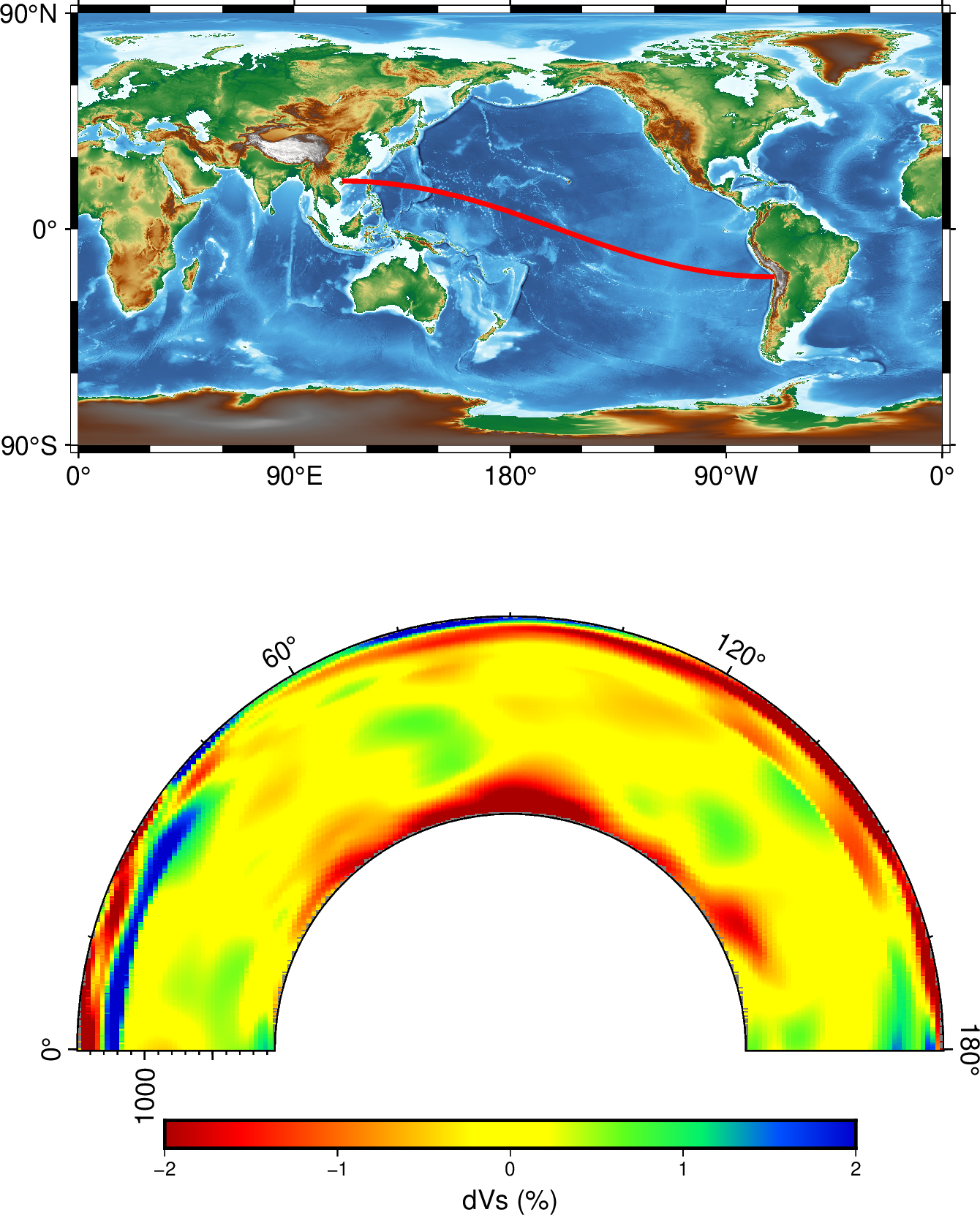 # gmt grdinterpolate S362ANI_percent.nc?dvs -Sprof | gmt sample1d $T -N2 > samp