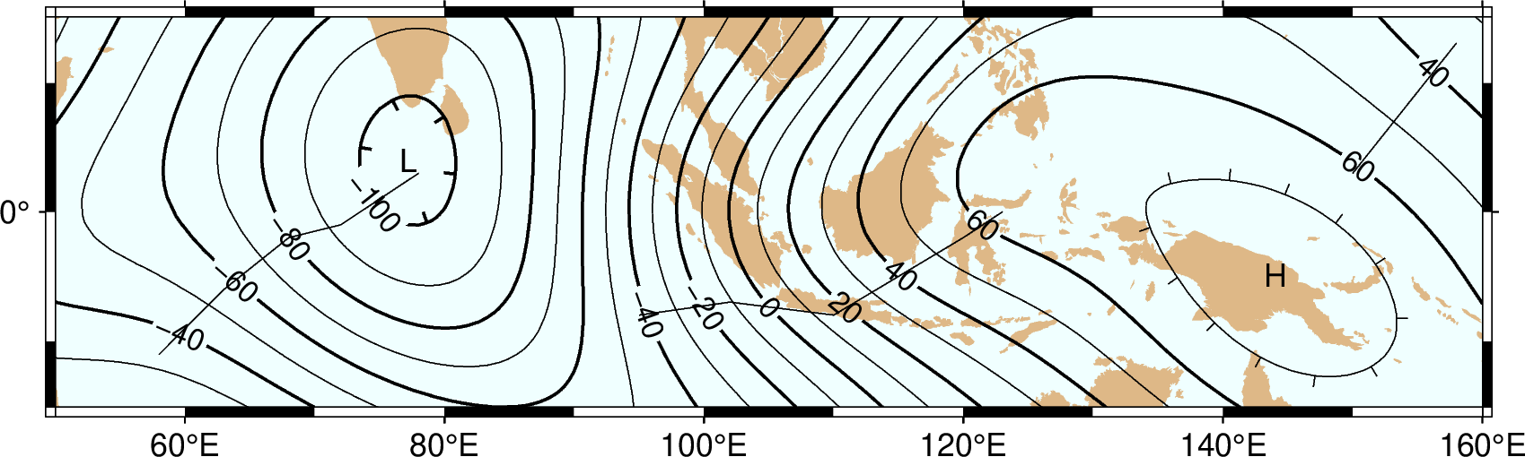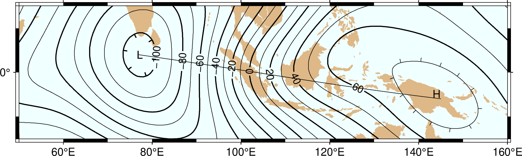 不绘制小于 low 大于 high 的等值线。 也可以设置为 -Ln 只绘制负值, 或 -Lp 只绘制正值。使用大写的 -LN 或 -LP 表示包括0等值线。