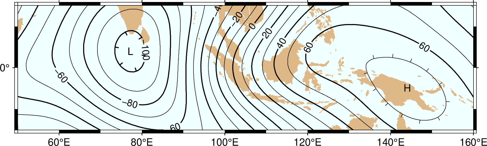 # -A20+f8p:以20为间隔对等值线进行标注,标注字体大小设置为8p。有标注的等值线会被加粗。