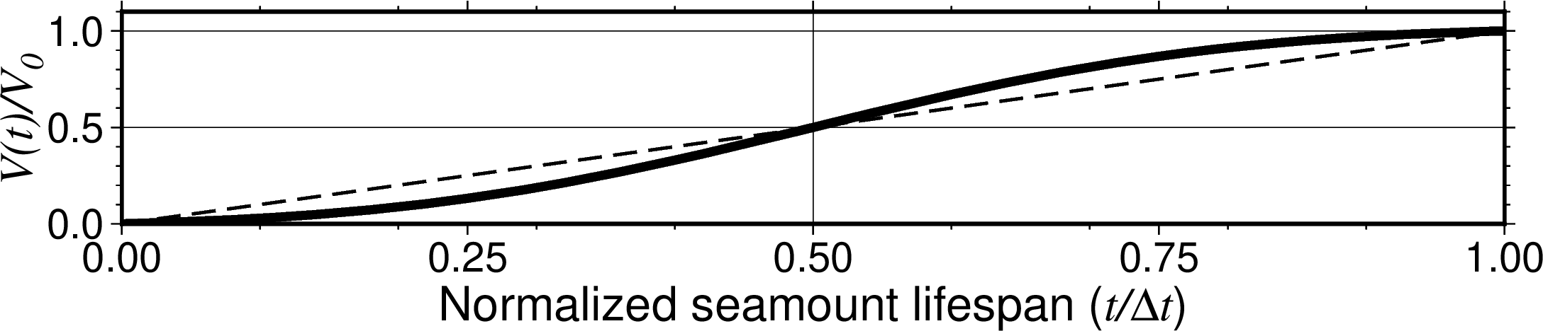 设置海山演化序列的起始时间,终止时间和,时间间隔,分别为 t0, t1 和 dt [默认只执行一次计算,与时间无关]。对于单个时间,只给定起始时间。 默认时间单位是年,追加 k 表示千年,追加 M 表示百万年。 使用 +l 选项以及将 dt 替换为 n 可以设置对数时间轴。或者,还 可以设置一个文件 file ,文件中第一列为时间,其中的时间也可追加单位, 不追加时默认使用年。 使用 -T 选项时,将对每个时刻的海山都输出一个网格。