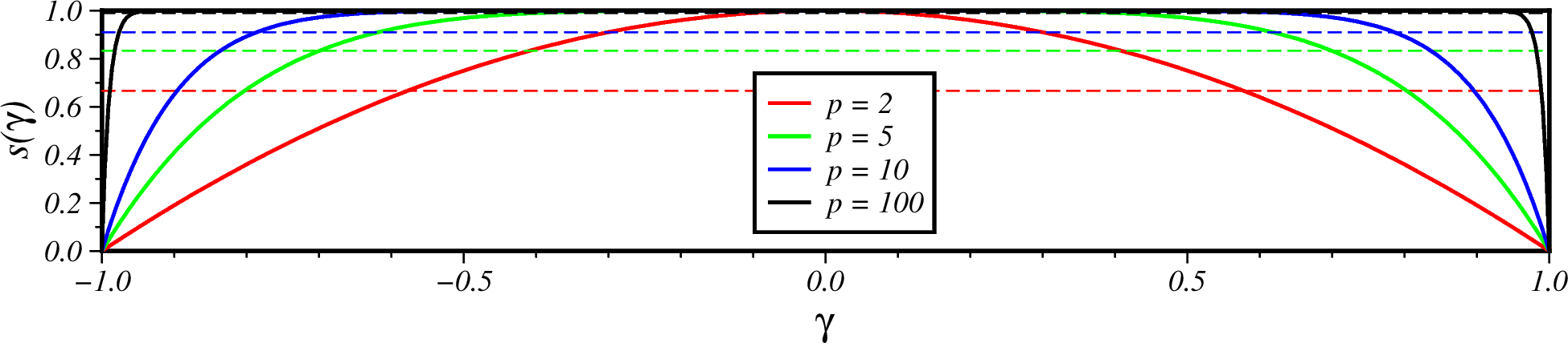 其中, \(\gamma = 2 (\alpha - \alpha_1)/(\alpha_2 - \alpha_1) - 1\) ,p 为 幂指数,可通过 +p 设置。启用该选项时,使用 \(s(\alpha)\) 缩放径向滑坡剖面, 使其在两个扇形位置从 0 开始,然后在滑坡的扇形区域变速变化,较大的 p 值对应快速 增大,较小的 p 对应快速变小。该参数可以使滑坡扇形时更加平滑。