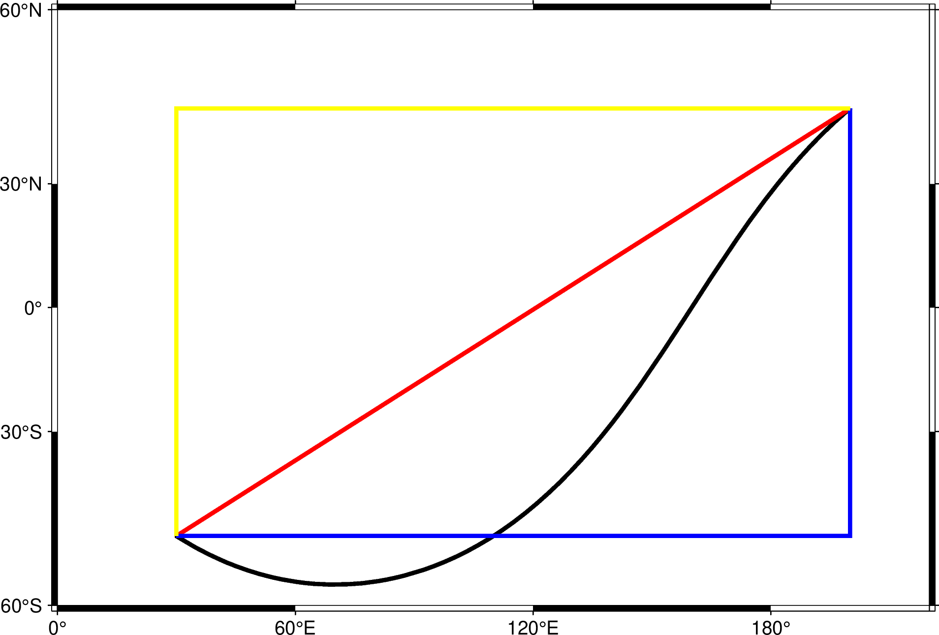 -A:忽略当前的投影方式,直接用直线连接两点-Am:先沿着经线画,再沿着纬线画-Ap:先沿着纬线画,再沿着经线画