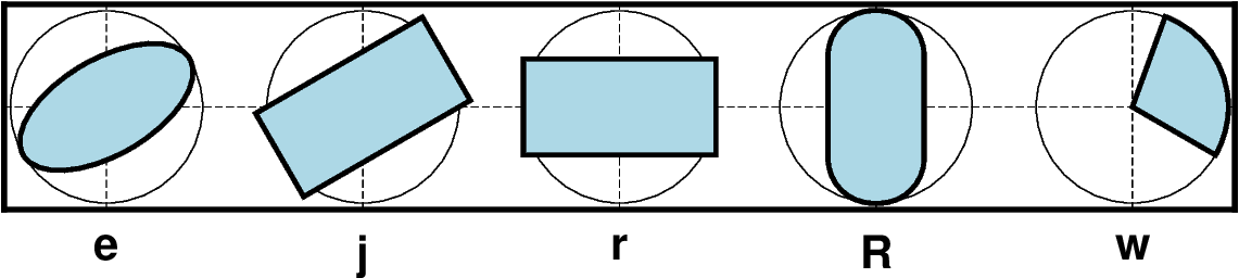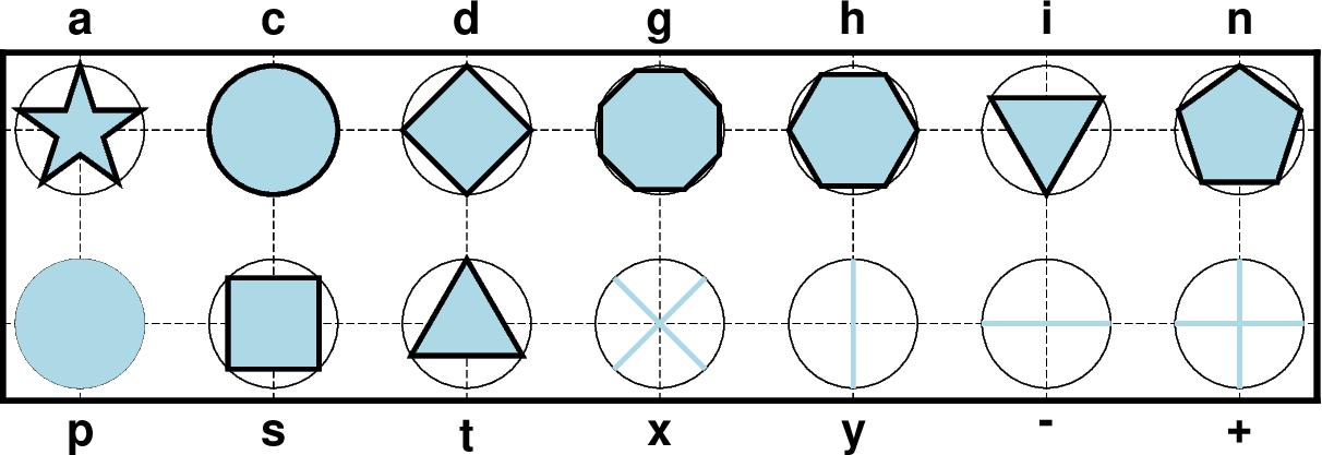 14种简单的基本符号,细圆圈表示相同 size 的外接圆。