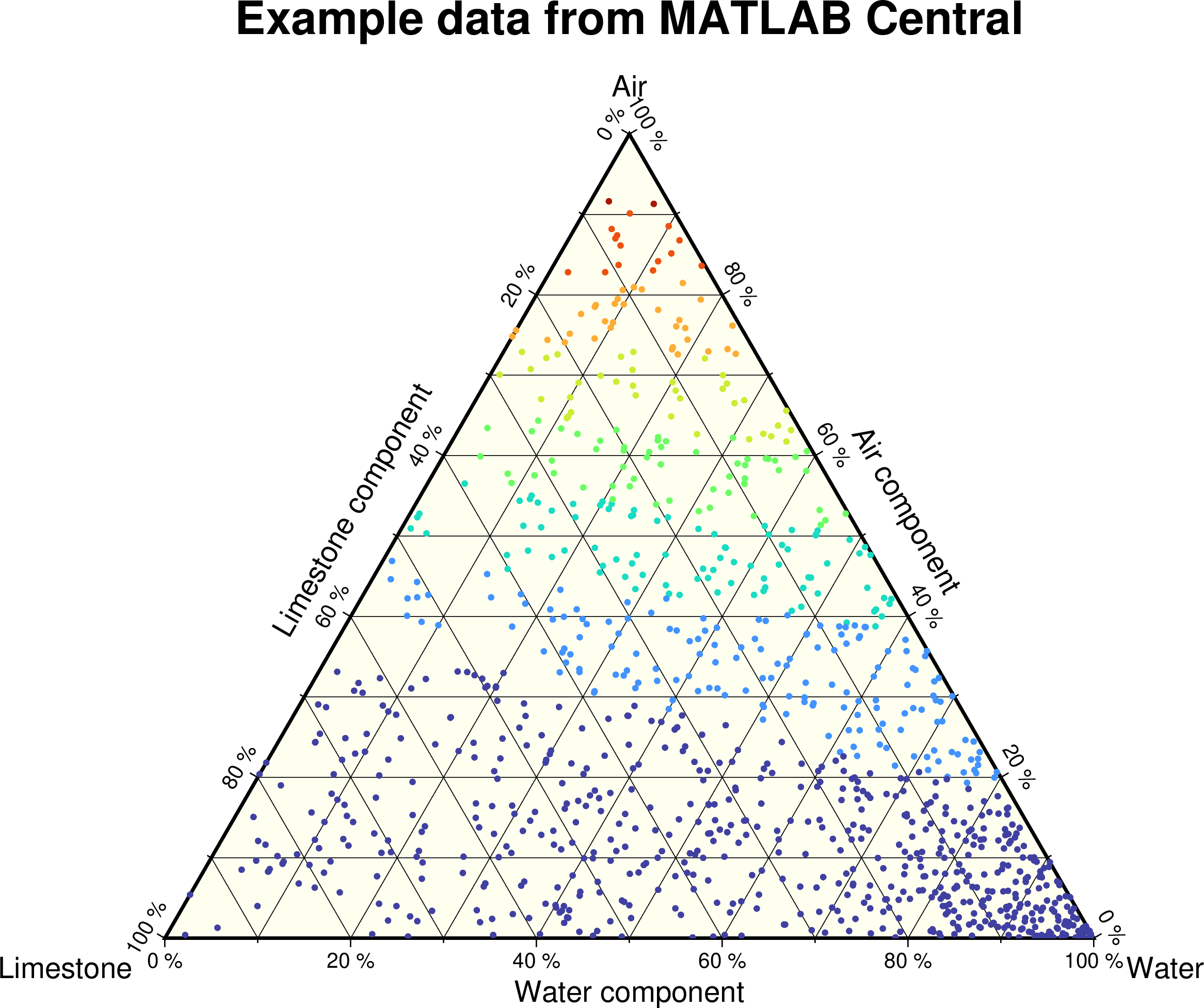 gmt ternary @ternary.txt -R0/100/0/100/0/100 -JX6i -Sc0.1c -C -LWater/Air/Limestone \