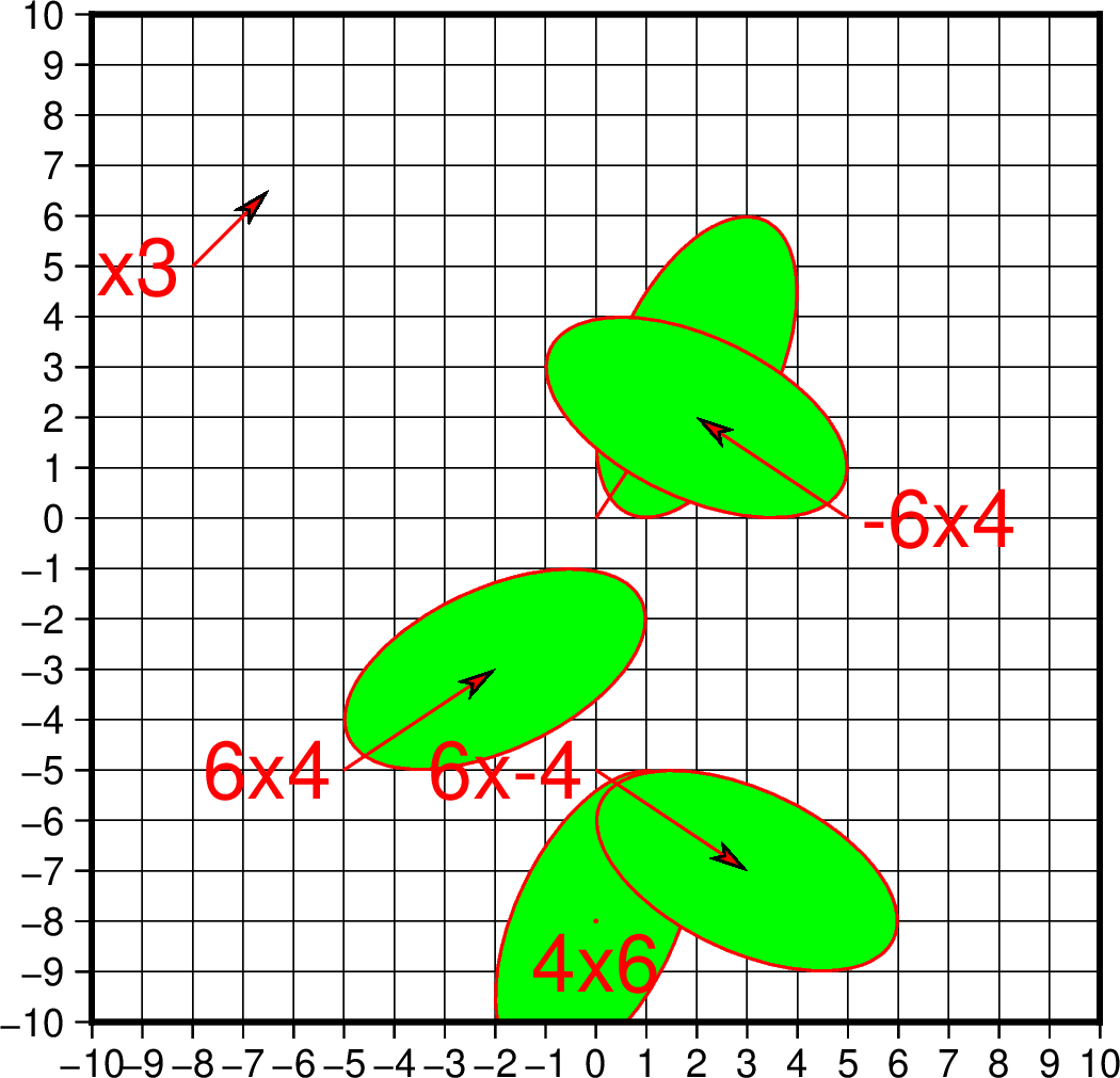 生成带有绿色椭圆的大红色箭头,并带有红色轮廓。请注意,39% 的置信度缩放将生成一个正好嵌入在尺寸为 Esig 乘以 Nsig 的矩形内的椭圆: