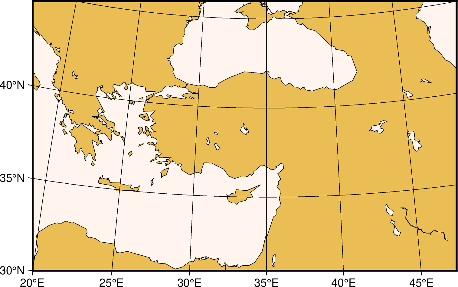 gmt coast -R20/30/50/45+r -Jt35/0.5c -Bag -Dl -A250 -Glightbrown -Wthinnest -Sseashell -png GMT_transverse_merc