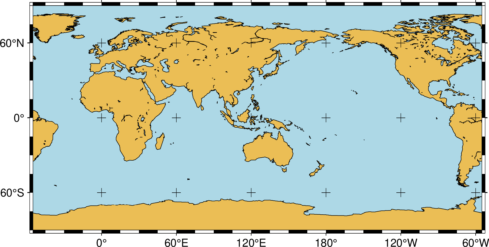 gmt set MAP_GRID_CROSS_SIZE_PRIMARY 0.1i MAP_FRAME_TYPE FANCY FORMAT_GEO_MAP ddd:mm:ssF