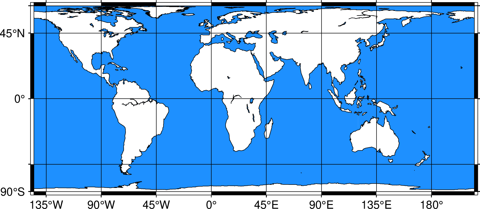 gmt coast -R-145/215/-90/90 -JY35/30/12c -B45g45 -Dc -A10000 -Sdodgerblue -Wthinnest -png GMT_general_cyl