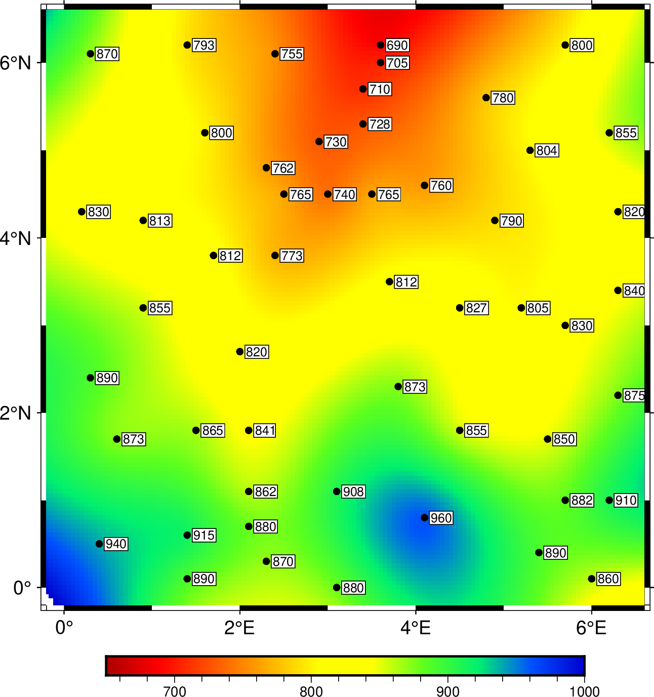 tmp.grd: v_min: 678.153747559 v_max: 1008.02862549 name: z