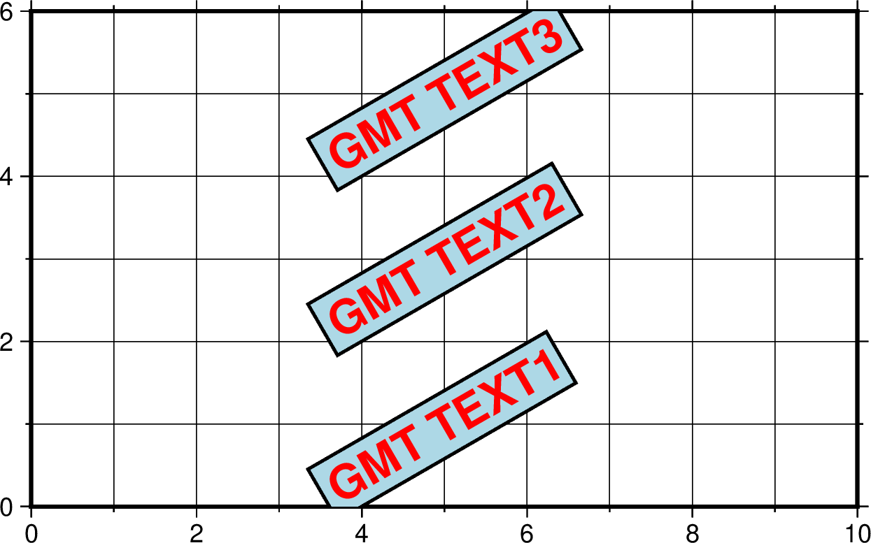 gmt text -F+f16p,1,red+a30 -W1p -Glightblue -C25%/25% << EOF